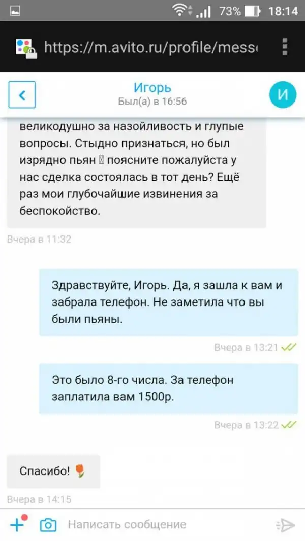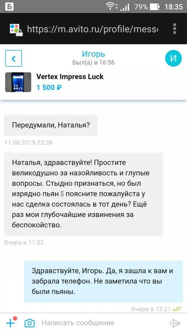 История одной переписки покупателя с продавцом. Довольно забавная ситуация, в которой продавец успешно продал свой телефон, но, к сожалению, полностью забыл об этом.
