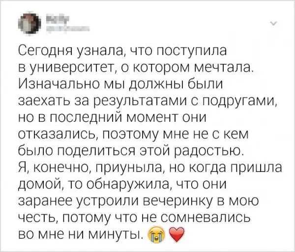 В умах множества людей по-прежнему существует расхожий стереотип, что женской дружбы не существует. Но многих девушек такие заявления справедливо обижают, и, чтобы доказать, что это наглая ложь, они начинают делиться разнообразными историями о женской взаимовыручке из личного опыта, например, в твиттере.