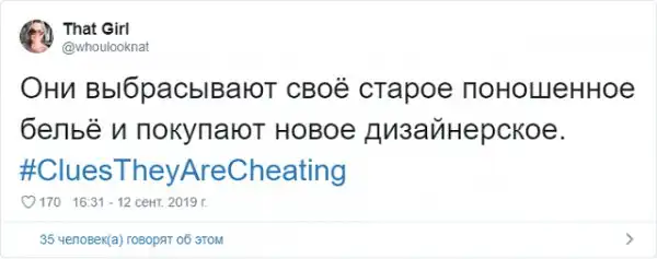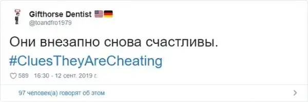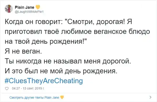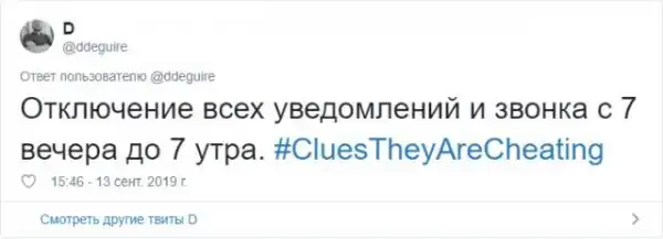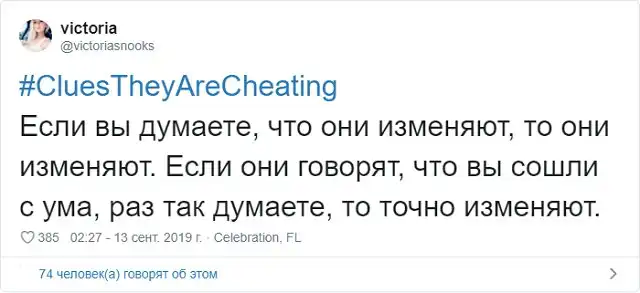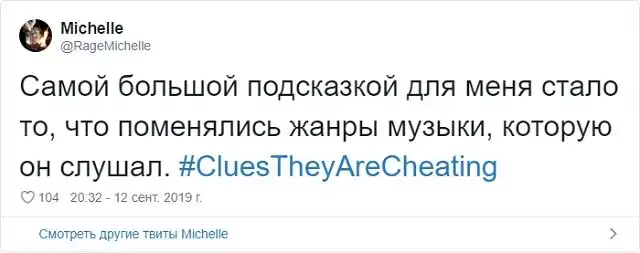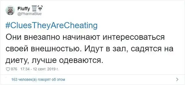 Пожалуй, самая неприятная ситуация, которая может случится в отношениях - это измена. Это максимально болезненно как для парней, так и для девушек. Поэтому в Твиттере стартовал флешмоб с хэштегом #CluesTheyAreCheating (доказательства того, что они изменяют). В нем пользователи в шуточной форме рассказывают, как найти улики и зацепки, которые сигнализируют о том, что вторая половинка явно что-то скрывает.