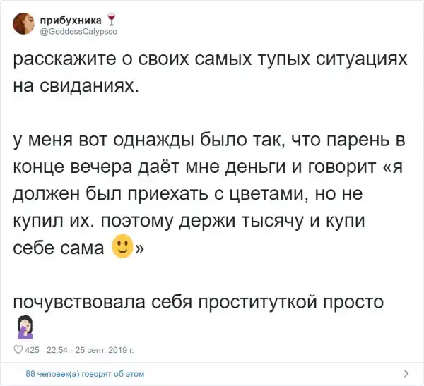 Сеть переполнена советами и руководствами о том, как сделать первое свидание с девушкой не забываемым. Некоторым "Донжуанам" явно не мешало бы с ними познакомиться. Пользователи Твиттера рассказали о своих самых провальных свиданиях, после которых кажется, что кот будет лучшим и единственным партнером на все времена!