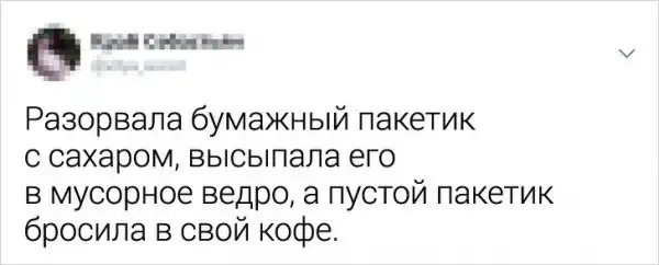 - Как-то я проснулся посреди ночи, чтобы сходить по-маленькому, а затем просто на автопилоте занялся утренней рутиной. И только после того, как я допил свой кофе, я понял, что на часах 3 часа ночи. А еще я вряд ли теперь смогу уснуть. © nombski