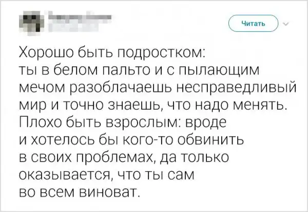 Предлагаем оценить подборку твитов от пользователей, которые знают толк в циничных и хлестких шутках, которые красноречиво описывают жизнь такой, какая она есть. Наверняка, в некоторых из этих твитов вы узнаете себя или ваших знакомых.