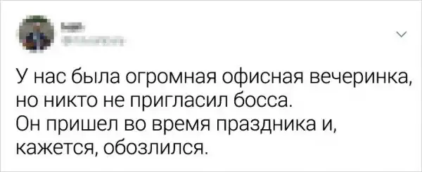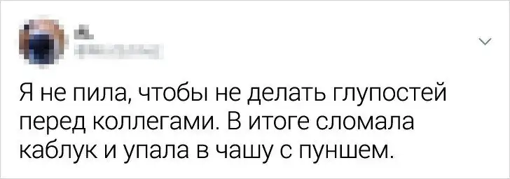 Далеко не все любят ходить на корпоративы, но, пожалуй, всем нравятся слушать истории о том, как кто-нибудь на них опозорился. Пользователи решили поделиться своими забавными историями прокорпоративные сабантуи и создали целый тред с с хештегом #OfficePartyFail. Давайте почитаем о том, как не надо веселиться на корпоративах.