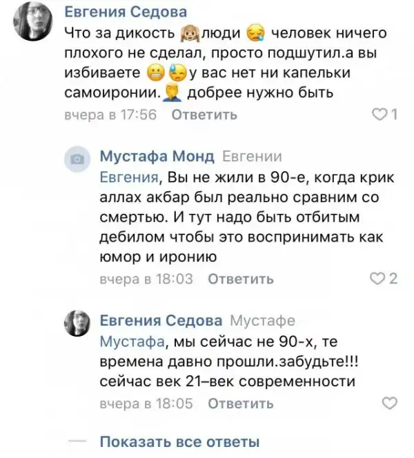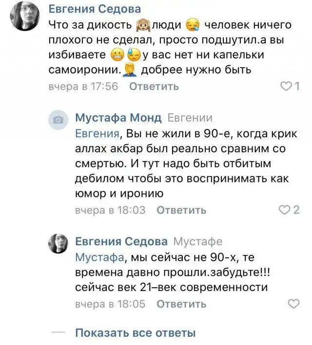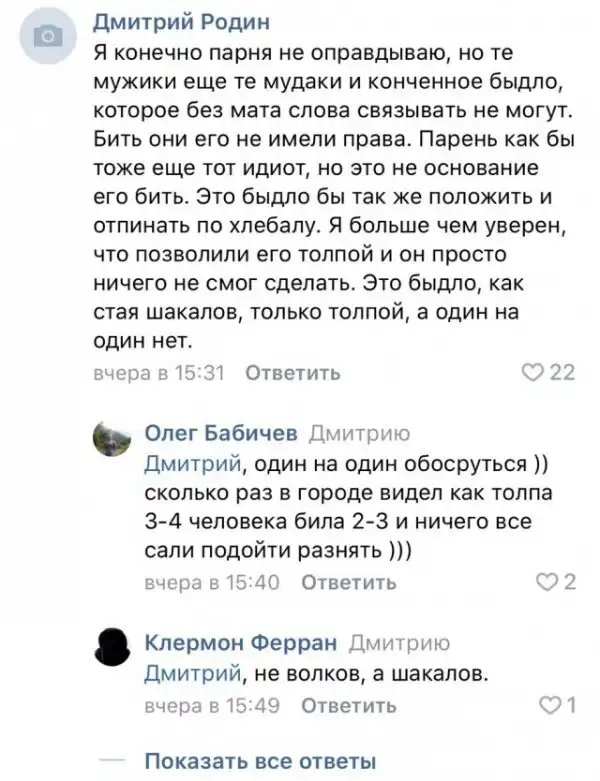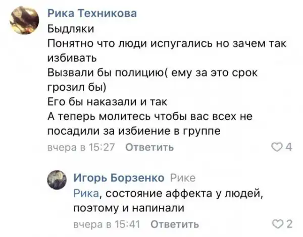 Так вот, в местном паблике уже сотни сердобольных, которые не помнят взрывы метро, домов, самолётов и автобусов - призывающих посадить тех, что бил морду и «быдло не понимает шуток, это же пранк, так во всем мире делают».