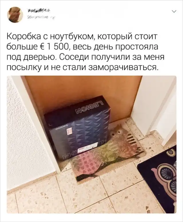 После того как я съехала с квартиры, спустя 3 месяца мне начала писать бывшая соседка, утверждая, что я навела порчу, ведь по-другому никак не объяснить огромное количество паутины в углах комнат. Мой ответ, что время от времени нужно убираться, поразил ее. © amazingcalf / twitter