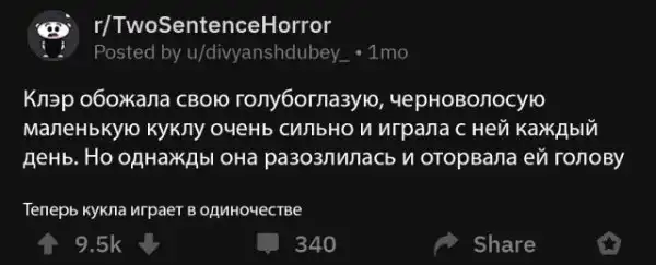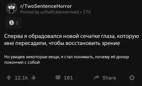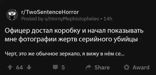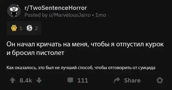 Небольшая подборка хоррор-историй буквально из двух предложений...