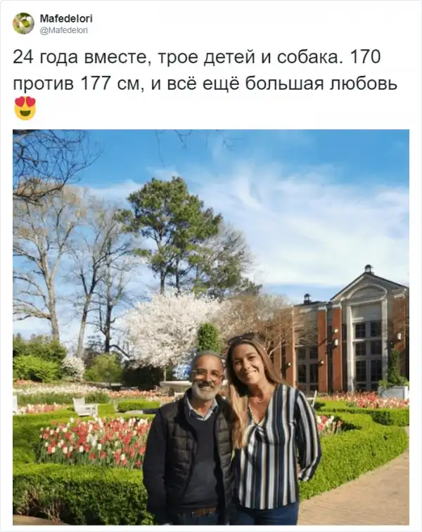 Девушка по имени Лизз Адамс подняла в Твиттере весьма интересную тему: важно ли, чтобы в парень был обязательно выше девушки. Ясное дело, что это необязательное правило. Но честности ради, многие девушки предпочитают, чтобы их возлюбленный был выше, или хотя бы был с ними одного роста. Лизз решила написать пост про неразумность со стороны девушек искать для отношений исключительно высоких мужчин. Она рассказала, что рост ее мужа 167 сантиметров и она значительно его выше. Но это никак не мешает их любви. Ее пост стал вирусным и в итоге образовался тред.