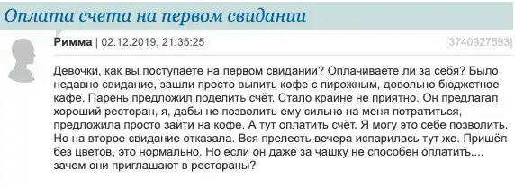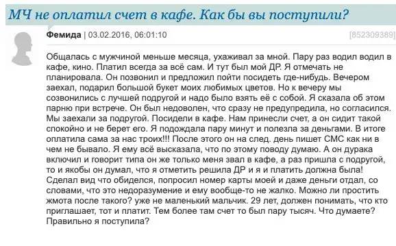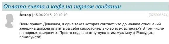 Часто на форумах появляются темы о меркантильности женщин, мол, поэтому мужчины предпочитают не платить
