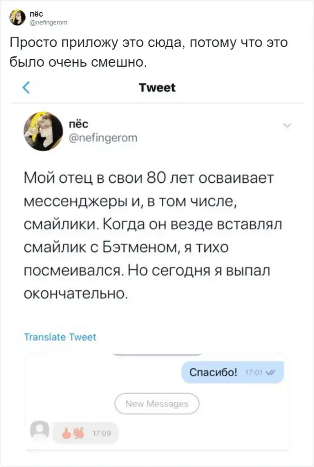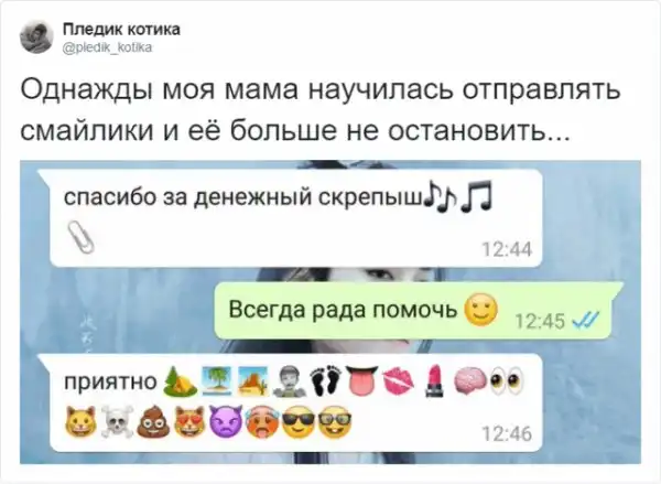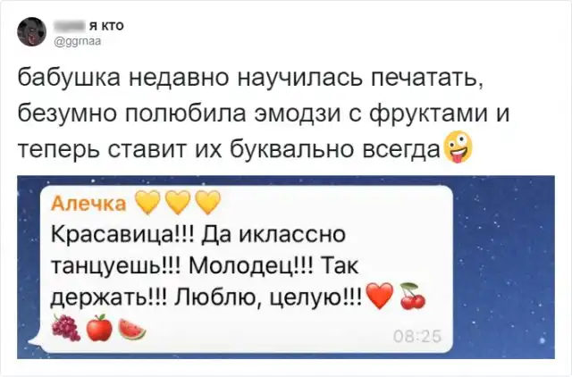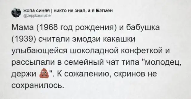 Многие люди старшего поколения только начинают осваивать социальные сети и различные мессенджеры, которых сейчас появилось очень много. И везде есть возможность использовать смайлы - кто-то ими пользуется, кто-то нет. Однако иногда их можно использовать к месту - правда, не у всех получается, поэтому и выходят подобные смешные фейлы.