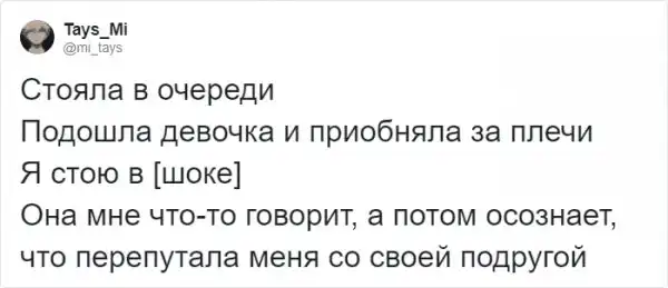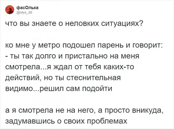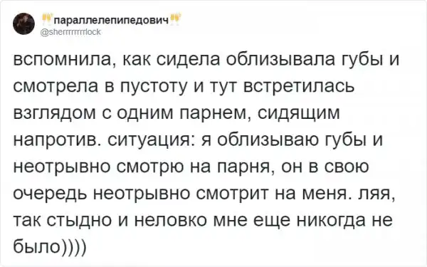 Хоть человек и социальное создание, общение с незнакомыми людьми, порой, дается очень легко. Общение с малознакомым человеком часто становится причиной немалого волнения, а в некоторых случаях - очень неловких ситуаций. Пользователи Твиттера решили поделиться своими историями, когда столкновение с малознакомым человеком приводило к забавнейшим конфузам. Давайте посчитаем.