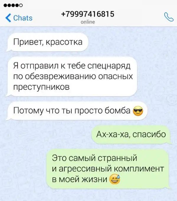 Кажется, что флирт - это что-то очень простое и естественное. Подходишь к понравившейся девушке, поражаешь ее воображение парой остроумных шуточек и можно смело приступать к обмену комплиментами. Но, увы, в реальном мире все не так просто. Даже при переписке парням удается попадать в конфузы, от которых хочется провалиться сквозь землю. Давайте посмотрим на их отчаянные попытки познакомиться.