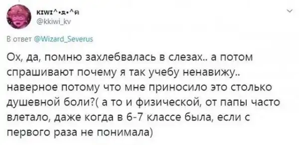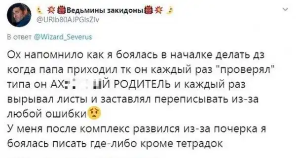 Воспитывать детей - это нелегкий труд. Часто так бывает, когда в семье кто-то из родителей берет на себя роли "хорошего" и "плохого" полицейского. Например, отец - это тот, кто тебя страшно накажет, а мама - это источник понимания и утешения. Также многие родители использует метод "кнута и пряника", который, по мнению многих психологов, больше подходит для дрессировки животных, а не воспитания людей, тем более, детей. А порой, в семьях случается тотальный "пряничный" дефицит и остаются только кнуты. В Твиттере запустили небольшой тред о том, как не надо делать с детьми домашнее задание. Думаю, многие родители согласятся, что заставить ребенка делать домашку - это то еще испытание. Но по рассказам этих пользователей, их мамы и папы явно пересмотрели "Цельнометаллическую оболочку".