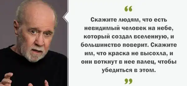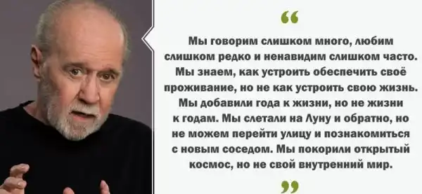 Вы конечно же уже слышали о Джордже Карлине, который мог говорить обо всем на свете, не скрываясь, не таясь и верно подбирая слова. Казалось бы обычный комик, но его изречения давно растащили на цитаты и многие его высказывания используют как заповеди.