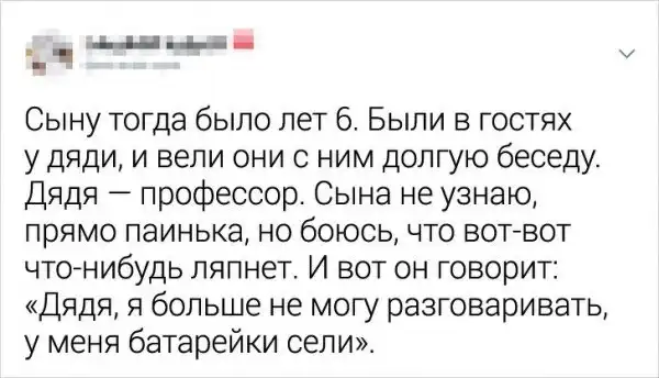 Дети - это цветы жизни. Но порой они бывают настоящими бесенятами. Родители уже валятся с ног, пытаясь успокоить и образумить своих неугомонных детишек. Но они моментально прощают им все шалости, когда они выдают уморительные перлы с абсолютно ангельским личиком. Давайте посмотрим подборку твитов от родителей, которые поразились забавными и жизненными фразами от своих детей.