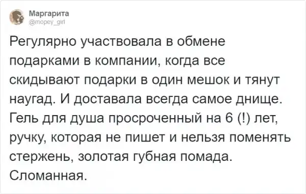 Тред в Твиттере: расскажите про самые дурацкие подарки, которые вам дарили