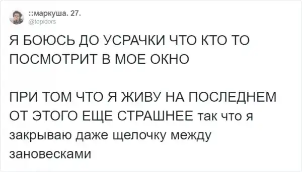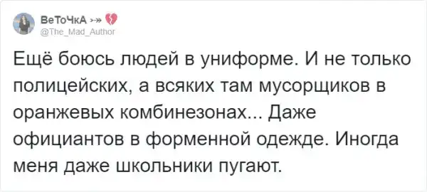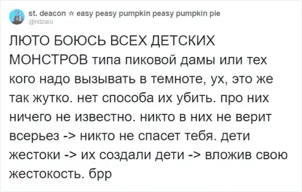 Все люди разные и все мы чего-нибудь боимся. Кто-то испытывает страх высоты, кого-то до смерти пугают пауки или змеи, есть и те, кто чувствуют себя не по себе в замкнутом пространстве. Но это вполне банальные страхи и фобии, которые есть у множества людей. Однако, на свете живут ребята, у которых страх настолько глупый и иррациональный, что в нем и признаться-то стыдно. В Твиттере собрались именно такие пользователи, решившие поделиться своими тайными и очень странными фобиями.