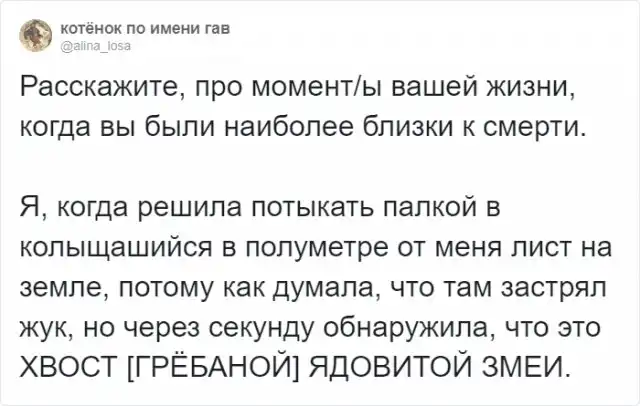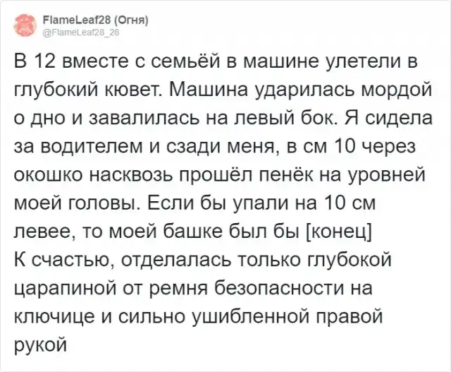 Скажите, приходилось ли вам оказываться в опасных ситуациях, которые происходили совершенно случайно? Если да, то вы поймете людей, которые поддержали данный тред в Twitter и рассказали, что с ними случалось. Такому везению можно только позавидовать.