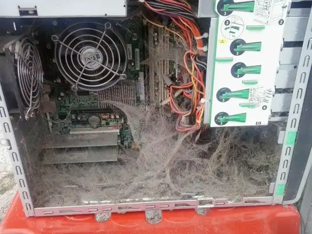 Вернулся через полчаса. Только Леха собрался пристраивать блок питания, смотрит, а пылищи внутри меньше не стало, все так же серо и беспросветно.