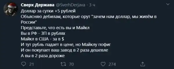 Русские пользователи соцсетей отреагировали на эти обвалы не так оптимистично. Но судя по реакции в социальных сетях, никто и не думает паниковать.
