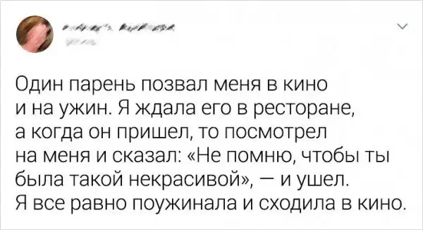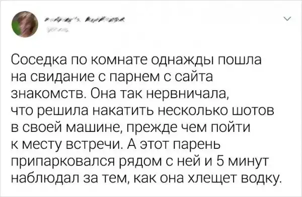 Далеко не все получается с первого раза. Свидания с девушкой тоже. Порой попытка провести романтический вечер оборачивается тотальным фиаско. Но главное не падать духом. Любую ситуацию спасет чувство юмора. Пользователи Твиттера поведали о своих нелепых свиданиях с весьма непредсказуемым финалом. Давайте посмотрим.