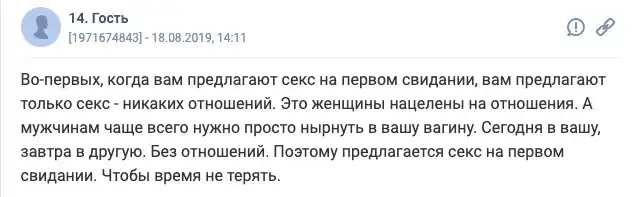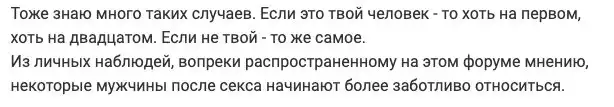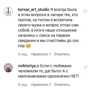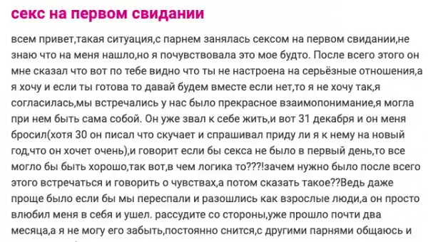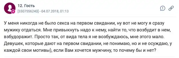 А что он обо мне подумает? А позовет ли на второе свидание? Именно такие вопросы обычно беспокоят женщин. Некоторые оттягивают момент близости до 3 свидания, другие - готовы воздерживаться в течение месяца. Все индивидуально, но мы решили подсмотреть мнения девушек.