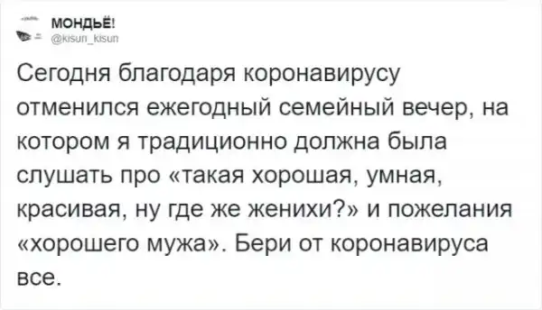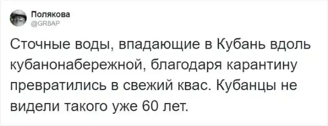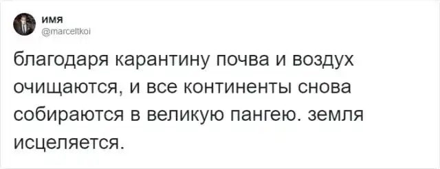 Наверняка вы натыкались на посты, в которых писали о том, что из-за карантина планета становится чище. Например, в Венеции вода стала такой чистой, что даже лебеди прилетели. Безусловно, это хорошо, а мы нуждаемся в позитивных новостях. Но пользователей Твиттера ничем не взять. Они могут шутить над чем угодно. Соцсети полнятся шутками про "минусы" коронавируса, а теперь настала очередь пошутить о его "минусах".