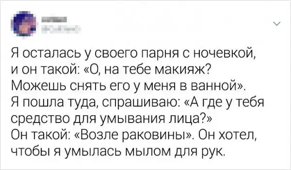 Чем драма отличается от комедии? В драме мы плачем из-за несчастья, которое случилось с главным героем, а в комедии мы смеемся над чужой бедой. Примерно также все происходит и в жизни. Но конфузы уморительны ровно до тех пор, пока они происходят с кем-то другим. А вот когда мы попадаем в такое положение, то хочется лишь одного: провалиться сквозь землю. Или написать жизненный твит и посмеяться над собой.
