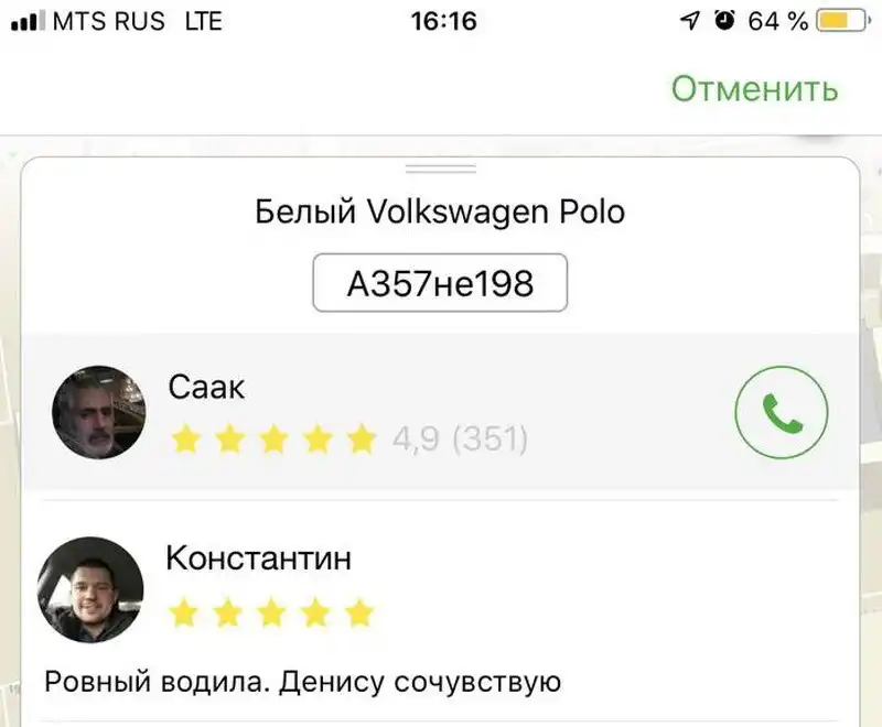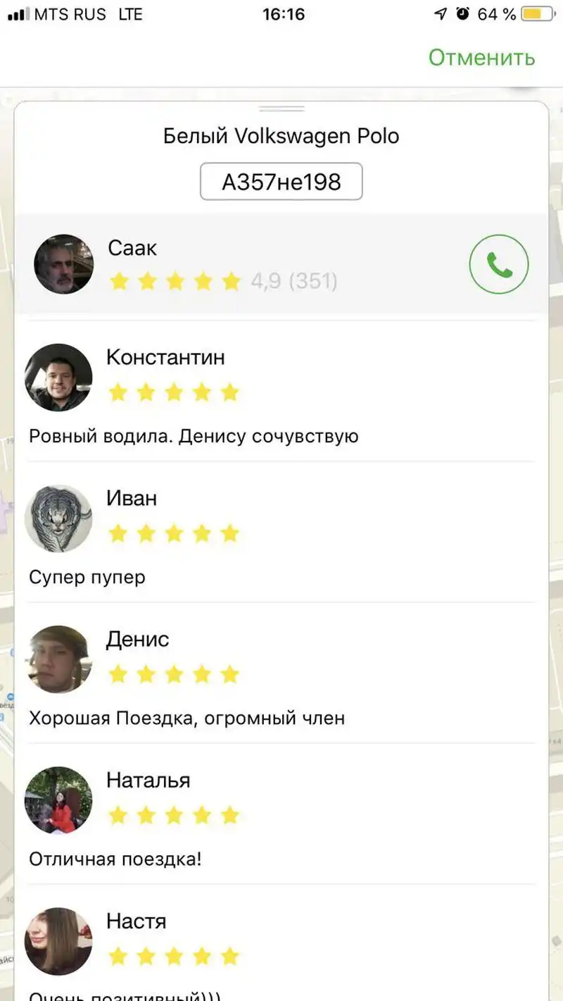 Во время вызова таки вы не читаете отзывы о водителе? Зря. Там попадаются неожиданные оценки людей, днями перевозящих по городу пассажиров. Интересно, что там случилось у Дениса…