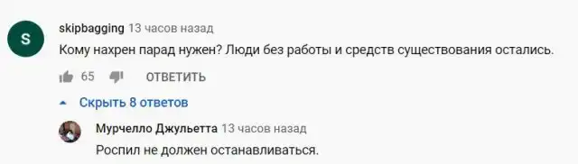 Наш президент Владимир Путин выступил с заявлением и сообщил, что Парад Победы будет перенесен - само собой, из-за пандемии коронавируса. Разумеется, все относятся к самому мероприятию и его отмене по-разному. Вот небольшая сборка комментариев из интернета - кажется, многие с таким решением согласны. Только не все в нормальной манере это высказывают.