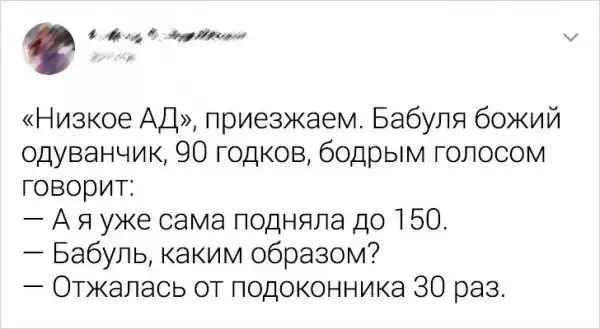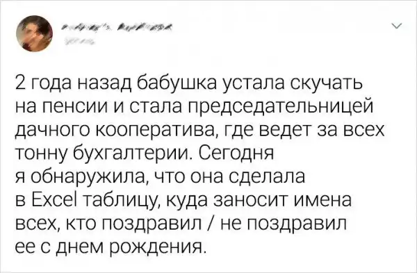 Кто сказал, что бабушка - это стереотипная сгорбленная старушка, с косынкой на голове и тростью в руке? Современные бабули - это энергичные и веселые женщины, активности которых позавидует любой подросток. Давайте посмотрим забавную подборку твитов о любимых бабушках.