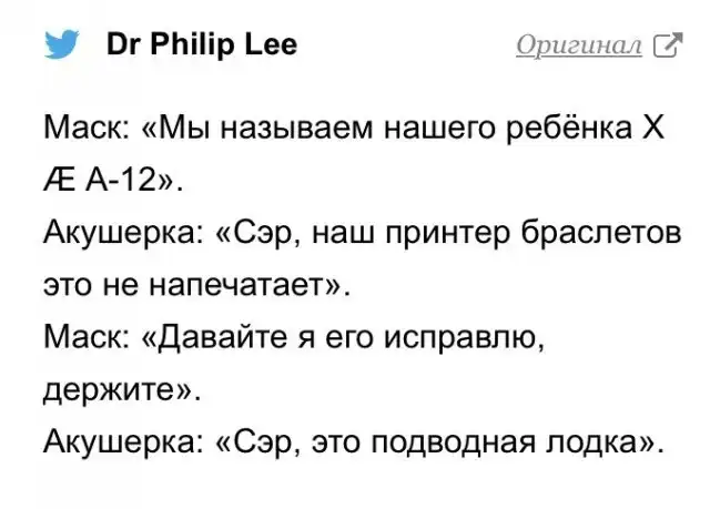 Вчера знаменитый бизнесмен стал отцом в шестой раз. Об этом он сам рассказал в социальных сетях. Пользователи порадовались за Маска, а потом узнали, что он собрался назвать новорожденного сына «X Æ A-12» - это вызвало бурную реакцию. В сети пытаются расшифровывать эту комбинацию, и выдвигают свои теории, почему такое странное имя миллиардер дал ребенку.