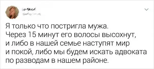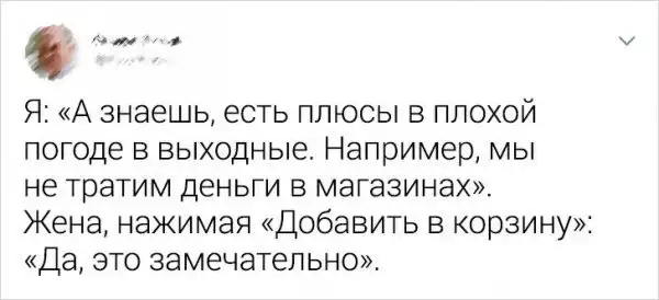 Жизнь в браке - это бесконечный источник вдохновения и юмора. Когда пара умеет посмеяться над проблемами, то никакие бытовые неурядицы не испортят их отношения. Давайте немного поднимем себе настроение, отвлечемся от негатива и посмотрим подборку забавных твитов про семейную жизнь.