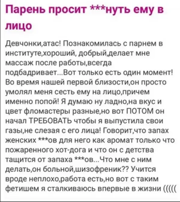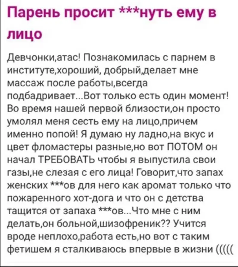 Если женщины заходят на подобные сайты, чтобы найти поддержку и единомышленников, то мужчины - чисто посмеяться. Перед вами подборка очень странных вопросов, которые каким-то странным образом родились в головах представительниц прекрасной половины человечества.