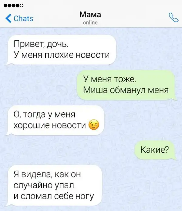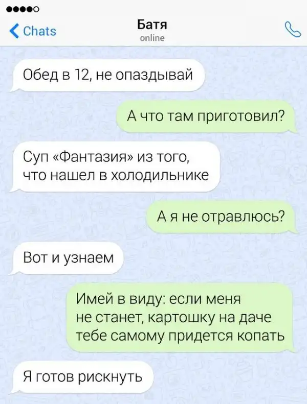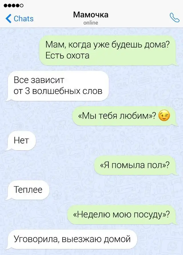 Когда в доме есть место для юмора, никакие ужасы "бытовухи" не смогут испортить семейное счастье. Участники этих бесед тому подтверждение. Давайте поднимем себе настроение и посмотрим подборку забавных переписок.