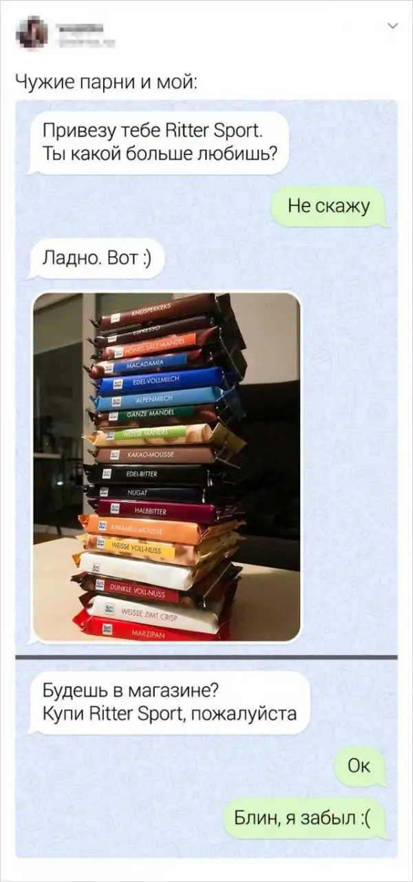 Как девушкам, так и мужчинам, порой хочется пожаловаться на своих вторых половинок. Например, девушки особенно нервничают, когда начинают сравнивать свои отношения с чужими. Например, смотрят чужой Instagram, в котором публикуются отшлифованные фотографии чей-то семейной идиллии. Но завидовать плохо и авторы данных твитов это понимают. Мало ли что скрывается за идеально картинкой. Поэтому девушки относятся к своим неурядицам в отношениях с юмором. Они иронично рассказали о своих парнях, сравнивая их другими мужчинами.