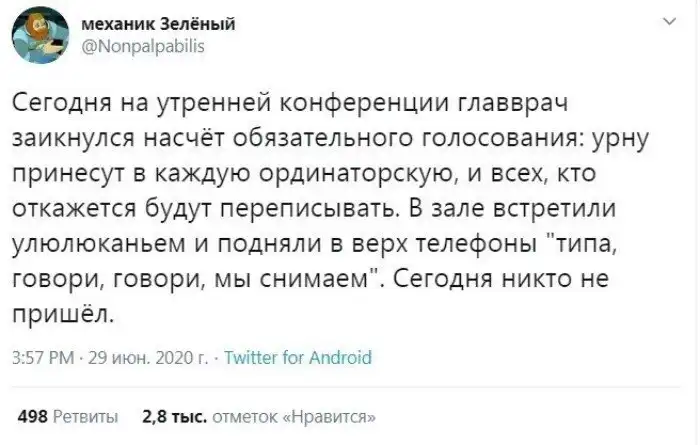 Молча. Послушно. Безропотно. pic.twitter.com/WeL8dlyh6x— Лудоман-любитель (@amateur_ludik) June 25, 2020
