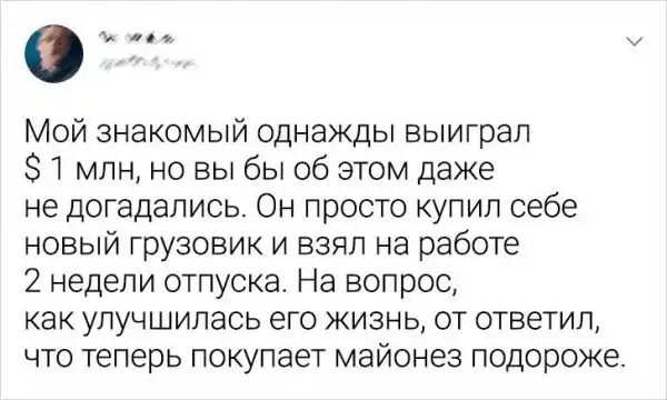 Наверное, даже самые закоренелые реалисты мечтали о счастливом лотерейном билете и огромном выигрыше. Понятное дело, что легче найти иголку в стоге сена, чем выиграть в лотерею, но, как говорится, мечтать не вредно! Пользователи соцсетей решили немного пофантазировать и с юмором рассказать, как бы они потратили миллион. Кстати, а как бы распорядились с внезапным богатством?