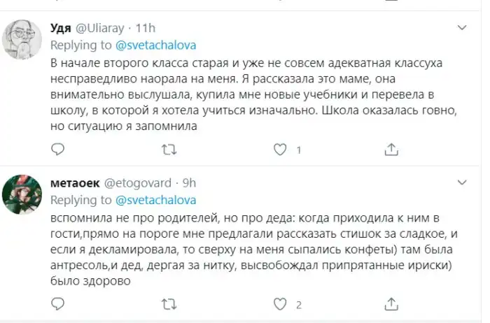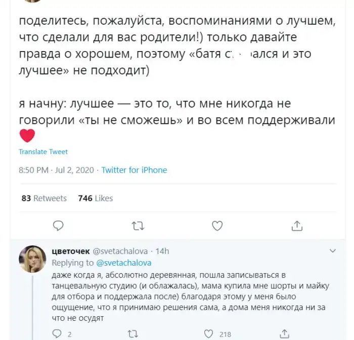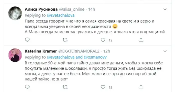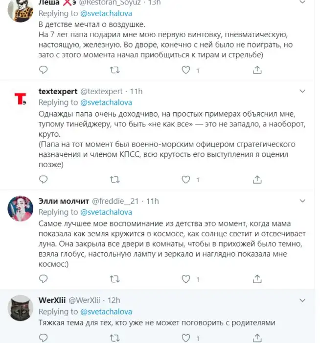 В Твиттере поделились своими воспоминаниями о родительской поддержке - оказалось, что даже современная молодежь, склонная объяснять свои неудачи плохим детством, помнит о добре и любви.
