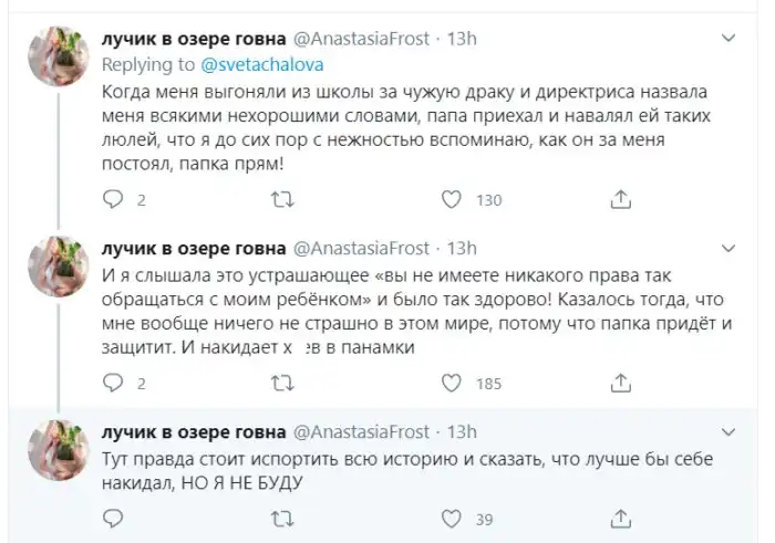 Общая современная тенденция молодого поколения во всех своих бедах винить родителей разбивается в пух и прах, когда читаешь посты разумных, вменяемых людей. Если вдуматься, у каждого из нас есть похожие воспоминания о том, как мама или папа встали горой за свою деточку, поддержали на первых порах и гордились своим ребенком даже тогда, когда его стоило бы выпороть.