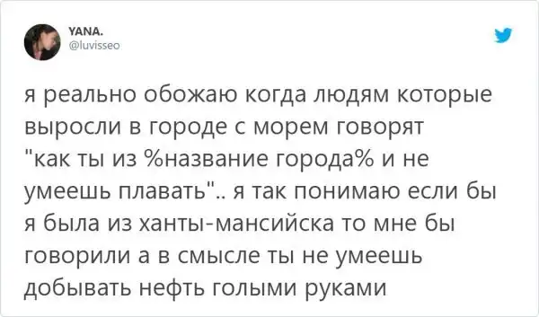 В нашей огромной стране есть множество городов и каждому из них посвящен какой-нибудь стереотип. Например, что в Туле едят только пряники, а что пьют только из самоваров. Пользователи соцсетей решили высмеять дурацкие стереотипы, связанными с их городами. Кстати, а какие стереотипы о вашем городе не нравятся вам?