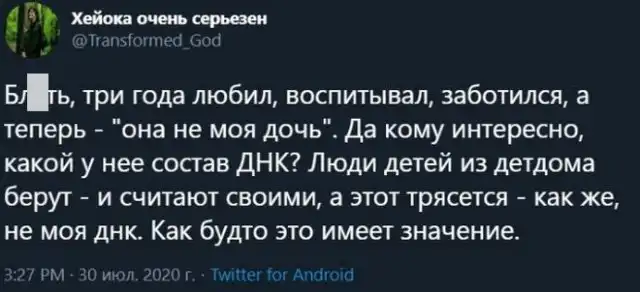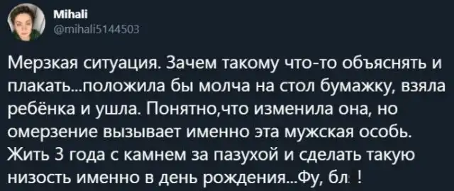 Ранее публиковалось видео про женщину, которая три года скрывала измену и тот факт, что ребенок не от мужа. Пользователи в социальных сетях отозвались о ситуации крайне странно. По факту - изменила жена, три года врала жена, то есть виновата исключительно она. А многие комментаторы обвиняют мужчину. А чью сторону займете вы?