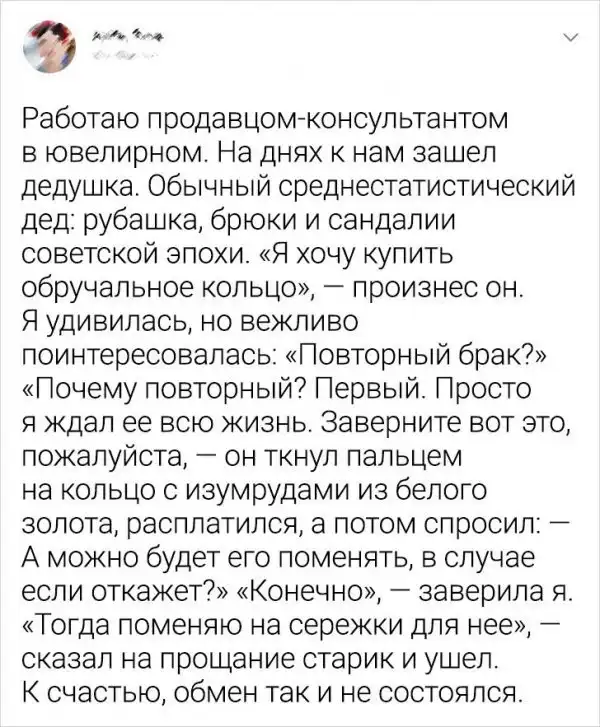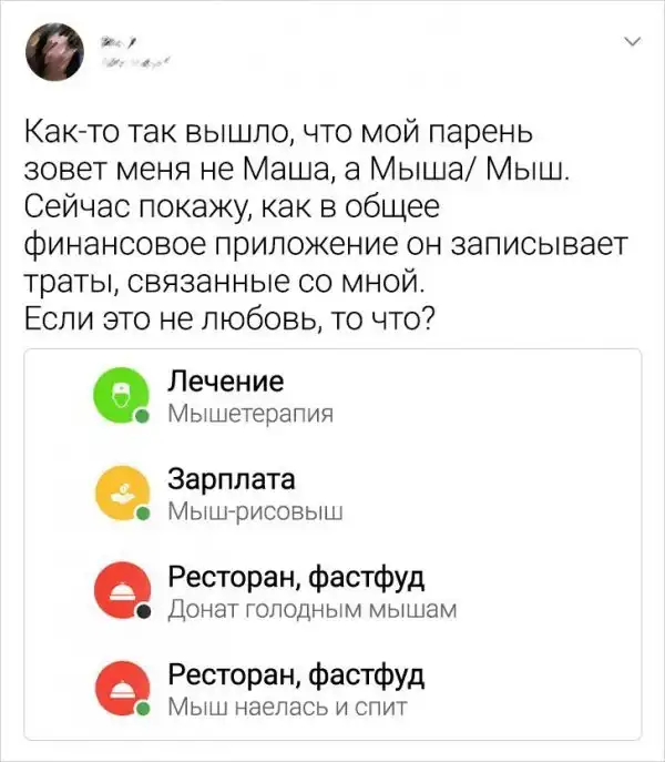 Что такое любовь? Весьма глубокий вопрос, но у каждого человека свое понимание и проявление любви. Любовь - это не только сдувание пылинок друг с друга, конфеты, цветы и подарки. Порой совместное приготовление котлет значит куда больше, чем все вышеперечисленное. Давайте посмотрим подборку забавных, трогательных и романтических твитов о самом прекрасном чувстве на планете.