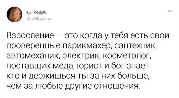 Время - коварная штука. Вот, сегодня тебе 18 лет и весь мир у твоих ног, а на следующий день тебе за 30 и кризис среднего возраста. Но на самом деле возраст - это всего лишь циферка в паспорте и она абсолютно ничего не значит. Ведь человеку столько лет, на сколько он себя чувствует. Авторы этих твитов с иронией и юмором относятся к взрослению, хотя некоторым "осознание" далось нелегко.