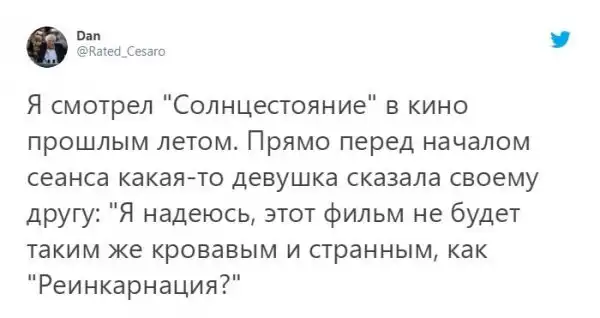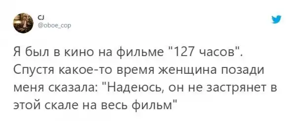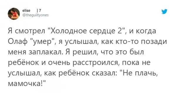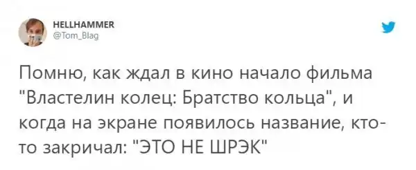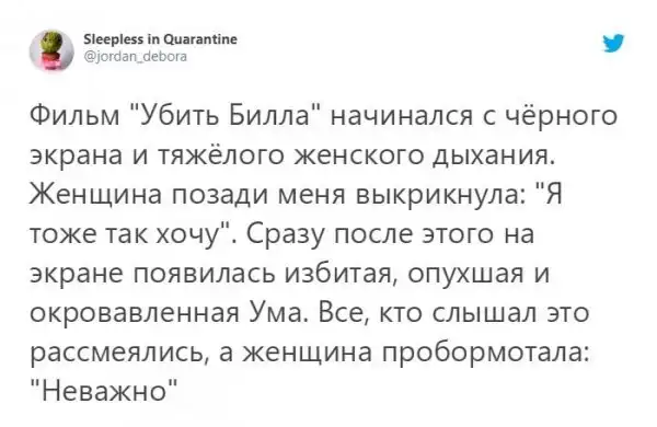 Из-за "бесконечного карантина" многие люди истосковались по кинотеатрам. Американский сценарист Майк Гинн тоже очень соскучился по кинотеатрам, но больше всего он тоскует не по просмотру кино на большом экране, а по разговорам и комментариям зрителей. Казалось бы, всех раздражает, когда народ шуршит пакетиками, перешептывается и чавкает. Но эти, на первый взгляд раздражающие моменты, являются частью атмосферы кинотеатра. Майк Гинн предложил пользователям вспомнить самые забавные и глупые комментарии людей в кинотеатрах.