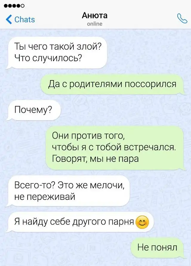 Эти забавные переписки могли с легкостью стать основой для сценарий какой-нибудь комедийной короткометражки. Ведь в этих СМС уже заложена отличная драматургия. Давайте поднимем себе настроение, ненадолго отвлечемся от дел и посмотрим подборку забавных переписок.