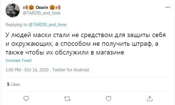 Реакция пользователей социальных сетей на штрафы за отсутствие защитной маски