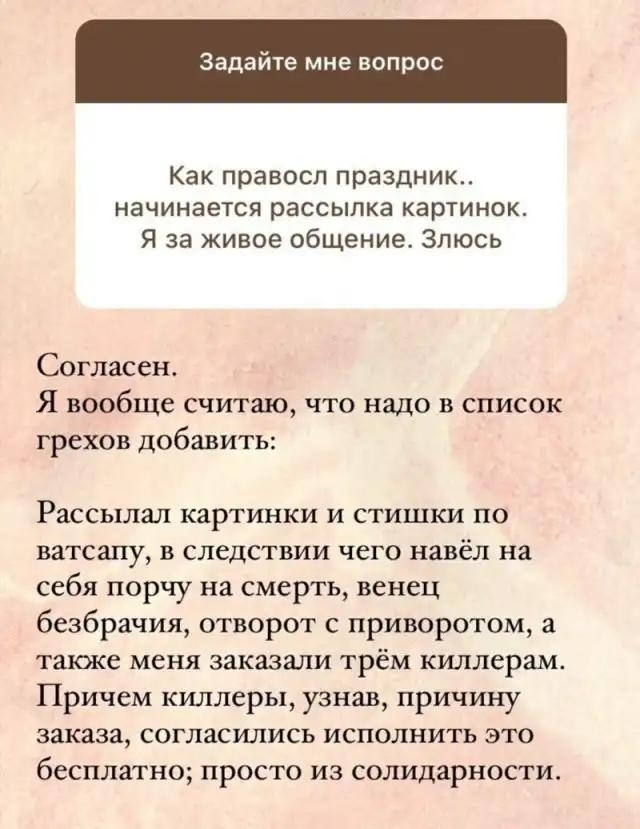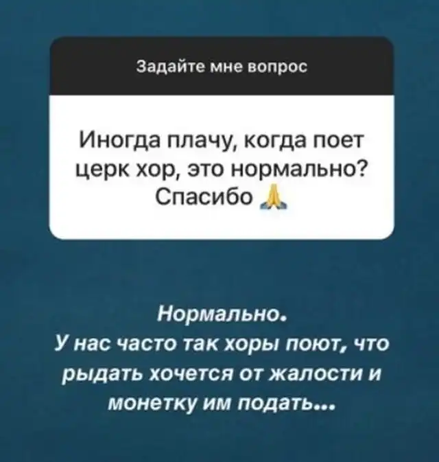 Не все священнослужители — это люди с каменными лицами. Например, этот иерей по имени Павел Островский общается со своими подписчиками в Instagram — к слову, за аккаунтом следят свыше 220 000 человек. Мужчина собирает вопросы от людей, после чего в забавной форме им отвечает. И эти ответы действительно могут поднять настроение. Однако отметим, что на серьезные вопросы он при этом не отвечает шутками, а детально рассуждает.