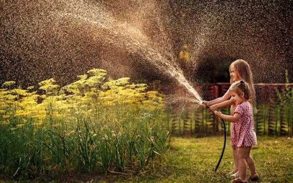 Я увлекаюсь подметанием, стараясь не пропустить ни одной соринки, чтоб не хуже, чем у папы, а когда заканчиваем он говорит, - "Вот, видишь уже и вода вся испарилась". Я оглядываю действительно высохший двор и на уровне волшебства воспринимаю отсутствие следов поливания)