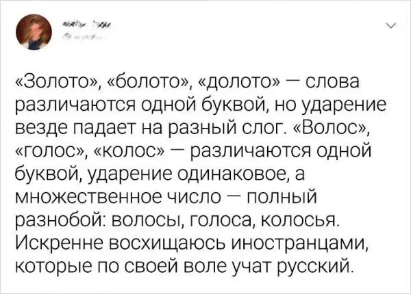 Превысокомногорассмотрительствующий, рентгеноэлектрокардиографический... Чтобы написать эти слова, нужно как следует сосредоточиться. А выговорить их - это вообще практически невозможная задача. Великий и могучий русский язык кого угодно обескуражит своей безжалостней орфографией и пунктуацией. Давайте посмотрим подборку забавных твитов о нашем родном русском и любимом языке.