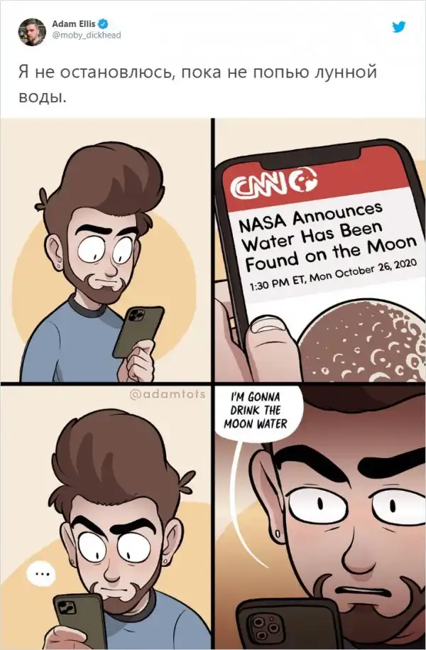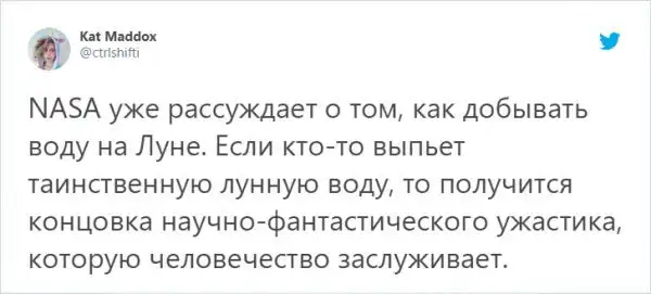 Еще в 2010 году российские ученые предположили, что на Луне, скорее всего, есть вода. И на днях это подтвердили исследователи из NASA. Они нашли молекул воды не только в темной части Луны, но и на ее солнечной стороне. Таким образом, как пишет BBC, это сможет помочь будущим лунным колонистам. В соцсетях на эту новость отреагировали как и всегда - с юмором. Давайте посмотрим.